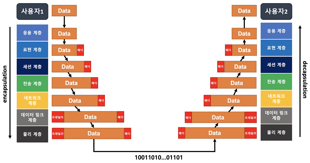 이걸 하는 이유는 수신부의 같은 계층에서 데이터의 호환성을 높이고 오류의 영향을 최소하 하기 위함이다.