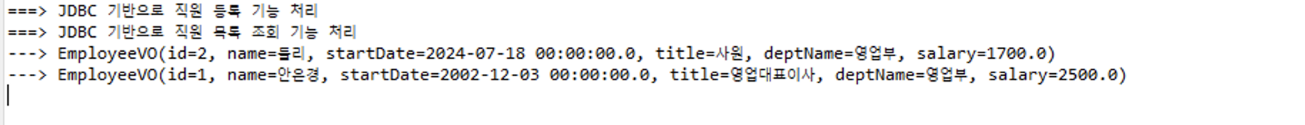 System.out.println("===> JDBC 기반으로 직원 목록 조회 기능 처리");