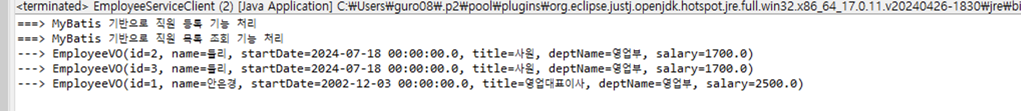 MyBatis의 클라이언트를 실행시키면
