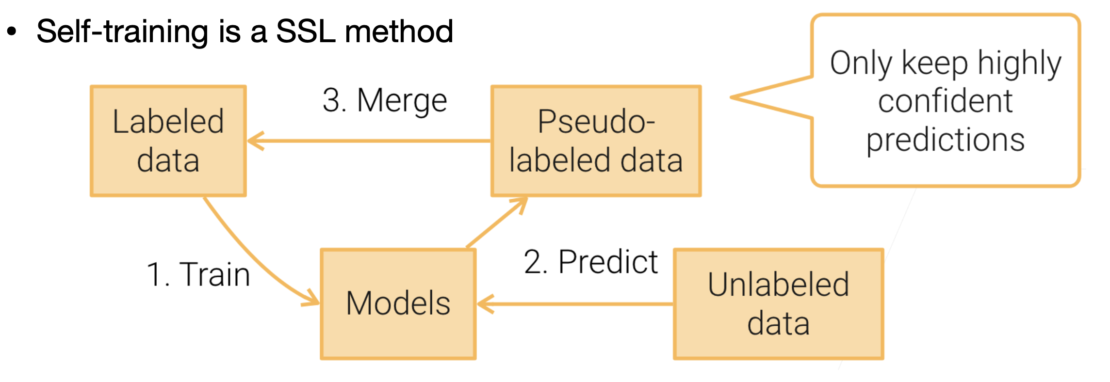 SSL은 Self training 방법론을 사용하는데,