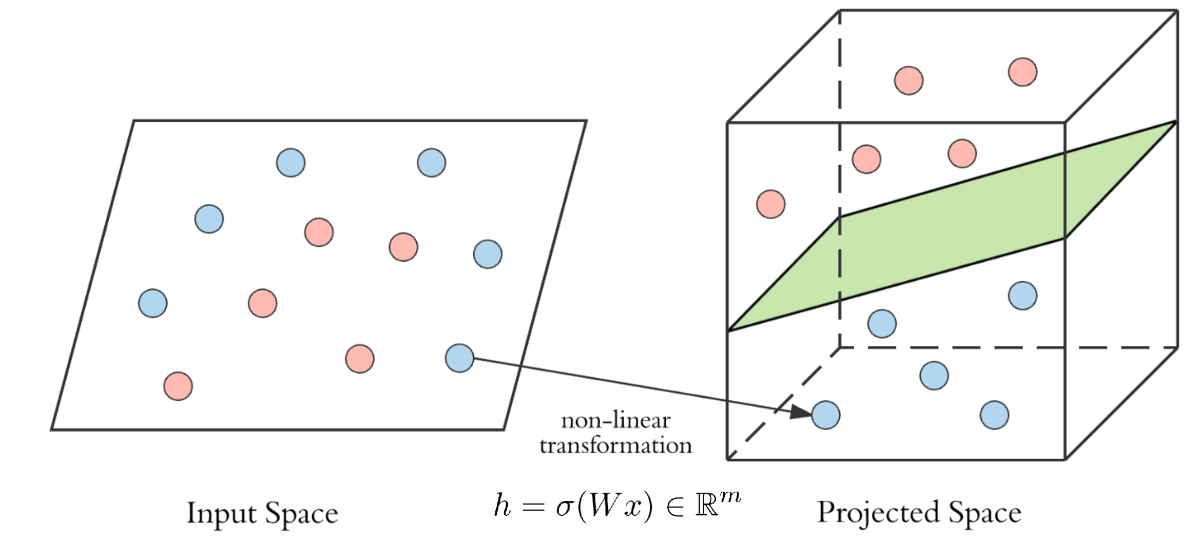 오른쪽은 뉴런 네트워크를 사용한 것인데 공간을 새로운 형태로 변환시켜준다.